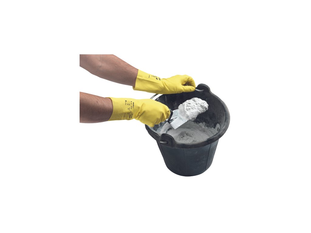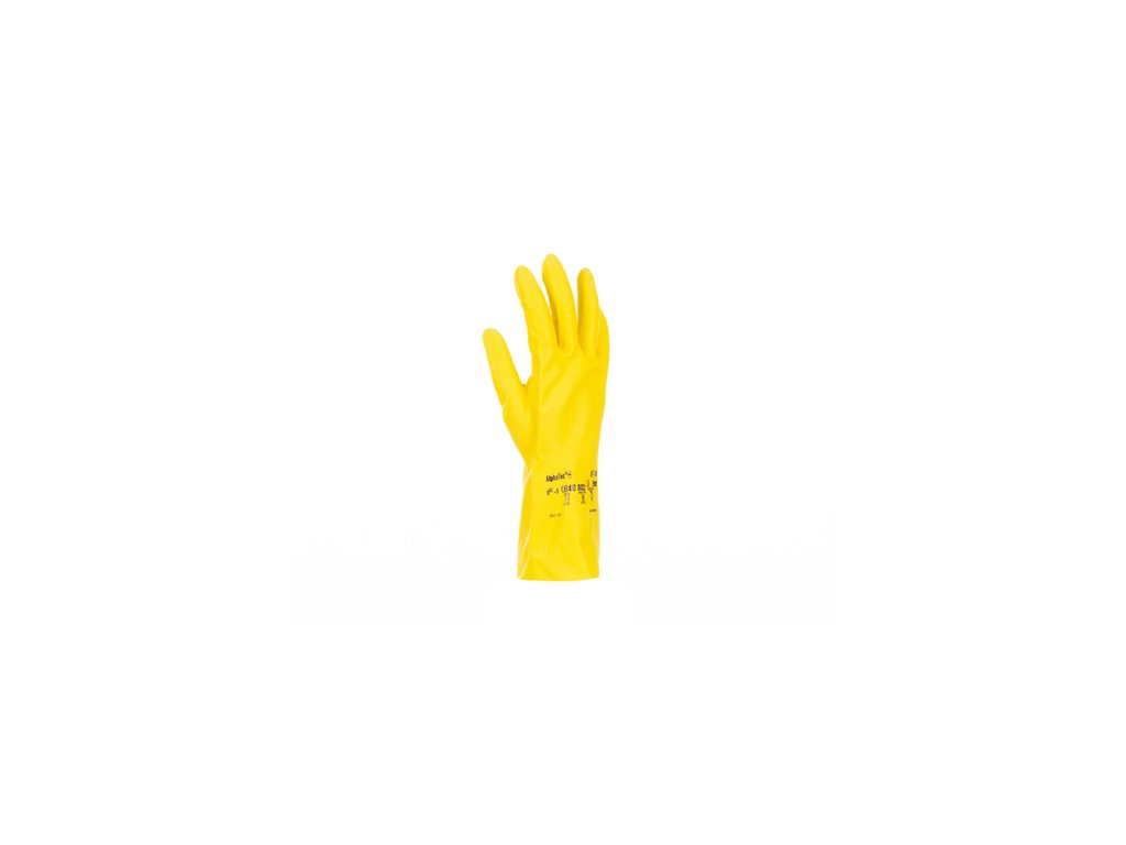 Žlté rukavice z 0,35 mm silného prírodného latexu, s velúrovou úpravou vo vnútri, v celkovej dĺžke 30,5 cm, vhodné pre práce v domácnosti.Dodatočné parametre