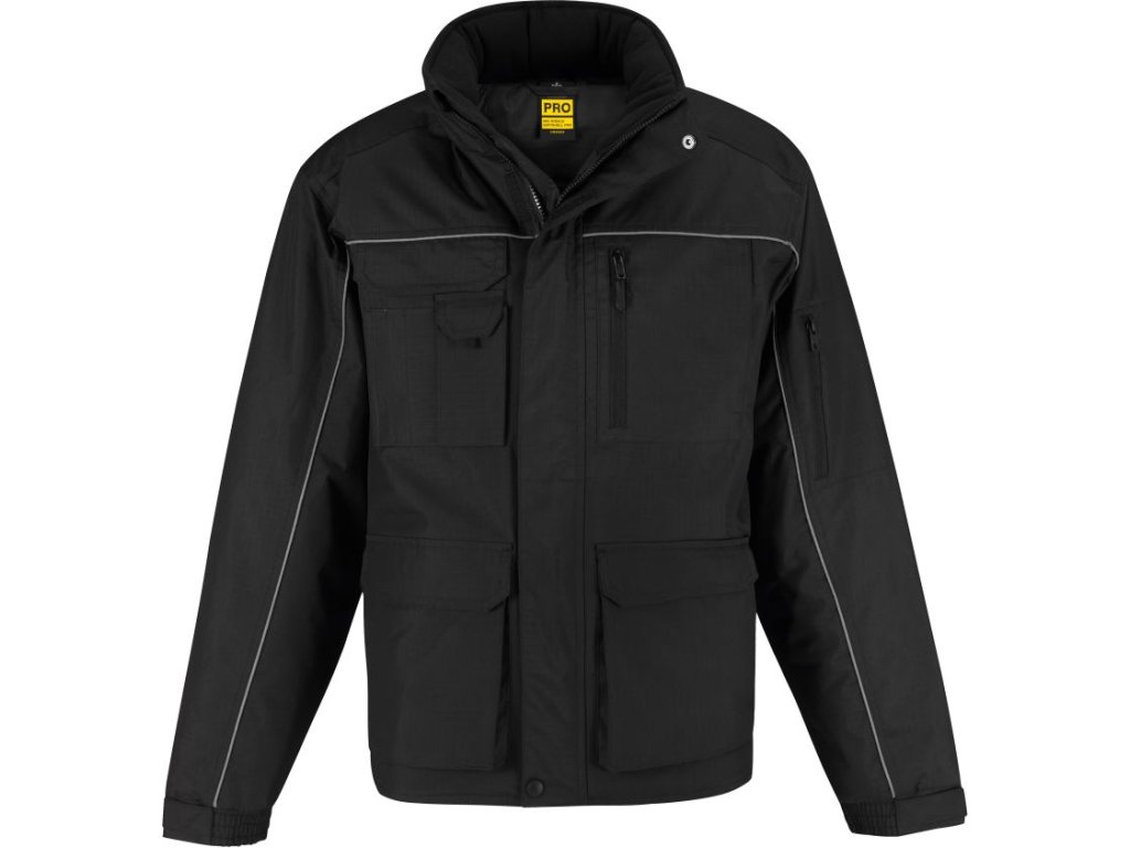 Vysoko funkčná pracovná bunda, ergonomická, skrytá kapucňa, nastaviteľné manžety so suchým zipsom, 12 multifunkčných vreciek, 1 ľahko prístupné vrecko na smartphone so suchým zipsom na vonkajšej strane, 1 vrecko na rukáve so zipsom, 3 ďalšie vonkajšie vrecká na pero, 2 predné vrecká s dvojitým vstupom a fleecové vrecká na zahriatie rúk s bočným vstupom rovnako ako klopa so zapínaním na suchý zips, 1 našité vnútorné vrecko so suchým zipsom, predĺžený chrbát, prístup k zušľachteniu na chrbte a hrudi, prateľné na 30 °, nemožno žehliť nie je možné sušiť v sušičke230g/m², podšívka: 200g/m², vonkajšia strana: 100% ripstop polyesterový hodváb, 100% polyesterové polstrovanieBuďte prvý, kto napíše príspevok k tejto položke.
