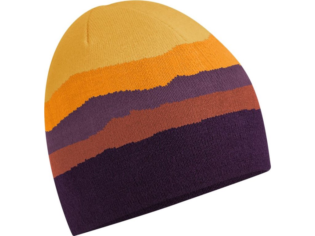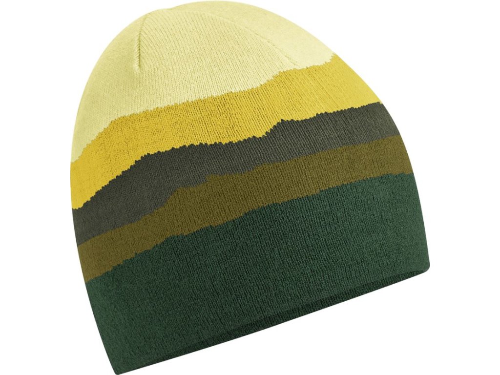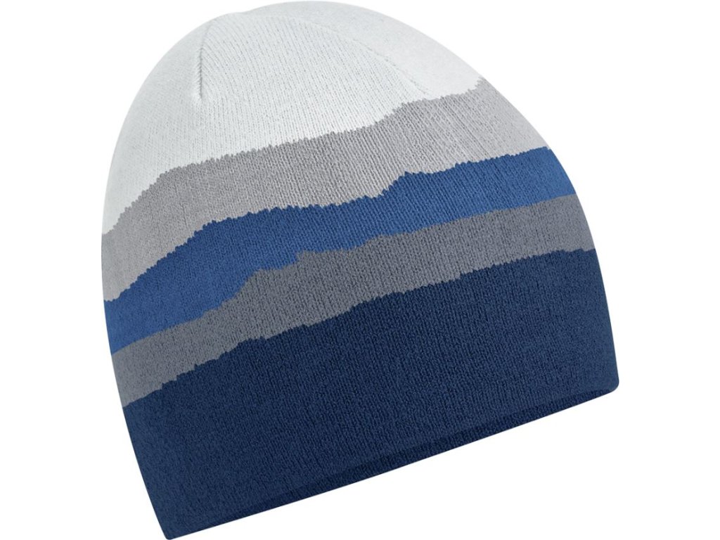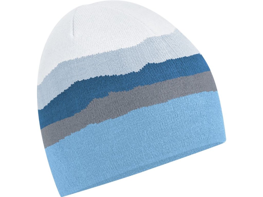 Dizajn s horskou krajinou, fleecová vnútorná čelenka, dvojito pletená, pull-on štýl, štítok TearAway, prateľné na 40 °, nemožno žehliť, nemožno sušiť v sušičke95% recyklovaný polyester, 4% nylon, 1% elastanDodatočné parametre