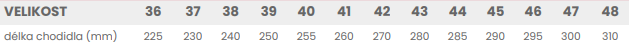 Tabuľka veľkostí: