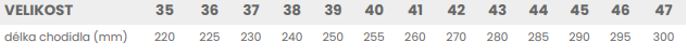 Tabuľka veľkostí: