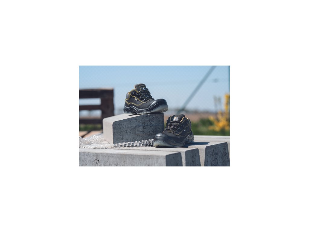 • bezpečnostné poltopánky s nekovovou tužinkou a aramidovou stielkou odolnou proti prepichnutiu • podošva z PU/TPU • zvršok z kvalitnej kože – nubuk