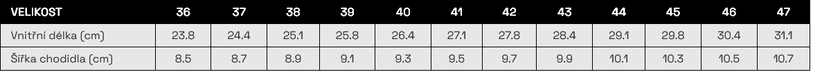 Tabuľka veľkostí: