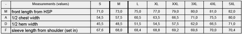 Tabuľka veľkostí: