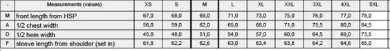 Tabuľka veľkostí: