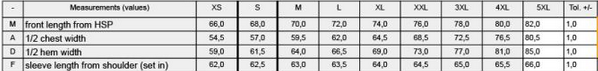 Tabuľka veľkostí: