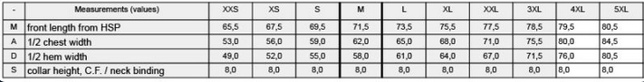 Tabuľka veľkostí: