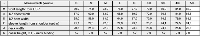 Tabuľka veľkostí: