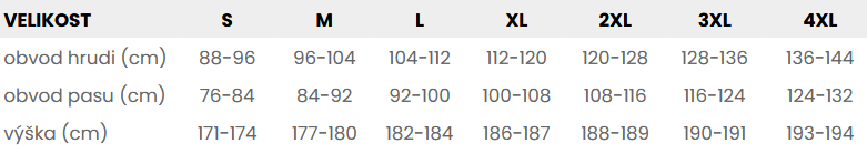 Tabuľka veľkostí: