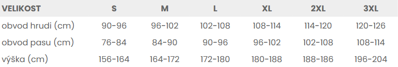 Tabuľka veľkostí: