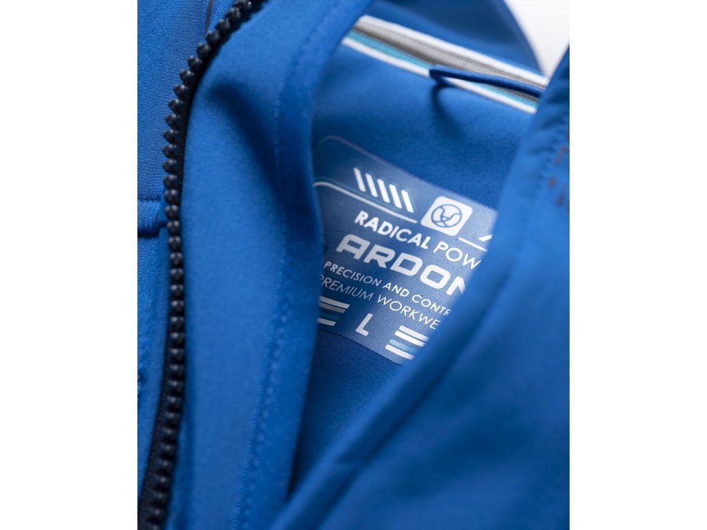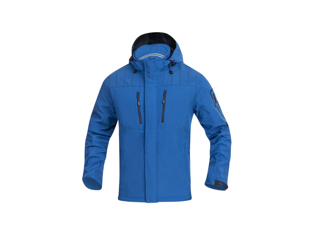 - luxusná pánska softshellová bunda s dekoratívnou potlačou na sedle a rukávoch, modré doplnky