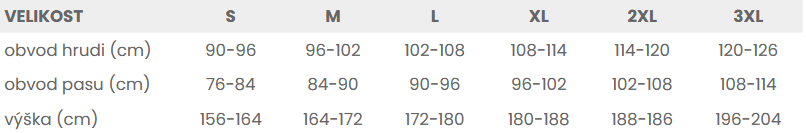 Tabuľka veľkostí: