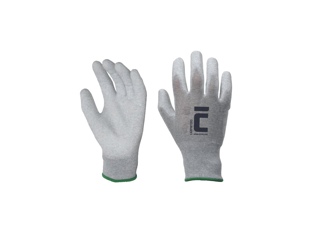 • pletené bezšvíkové antistatické polyesterové rukavice s integrovaným uhlíkovým vláknom