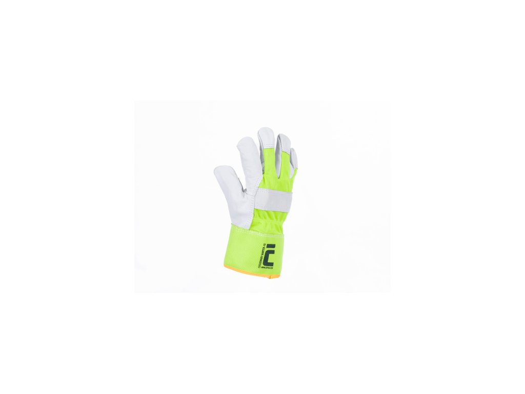 Zateplené rukavice z jednofarebnej jemnej lícovej hovädziny v dlani a polyesterového úpletu reflexnej farby na chrbte a manžete.Dodatočné parametre