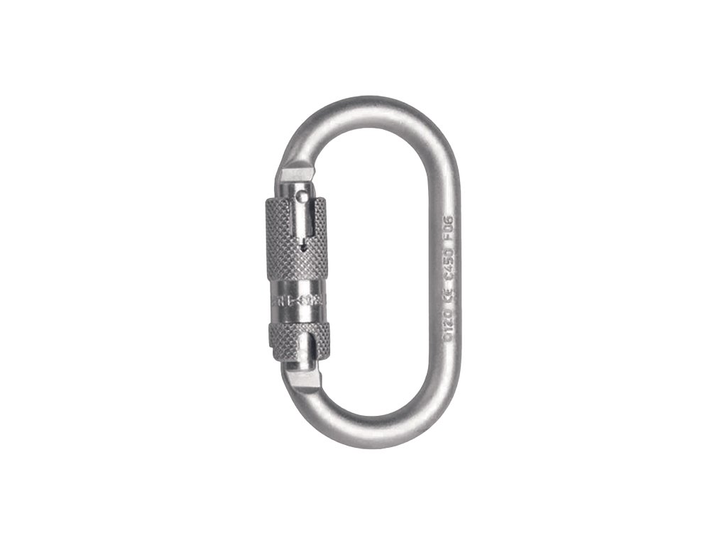 Oceľová oválna karabína s twist lock poistkou. Pevnosť 25kN, otvorenie 19mm, váha: 0,17 Kg, rozmer: 59x110mm, CE EN362-B EN12275-HDodatočné parametre