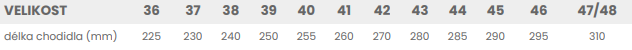 Tabuľka veľkostí: