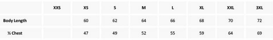 Tabuľka veľkostí:
