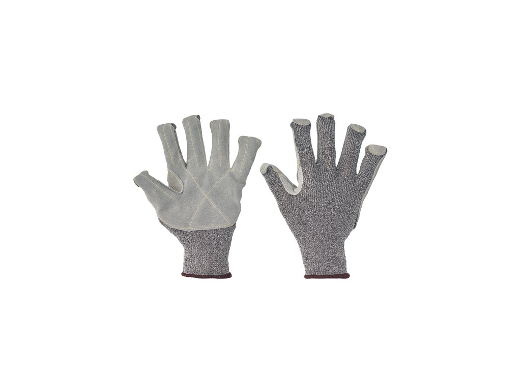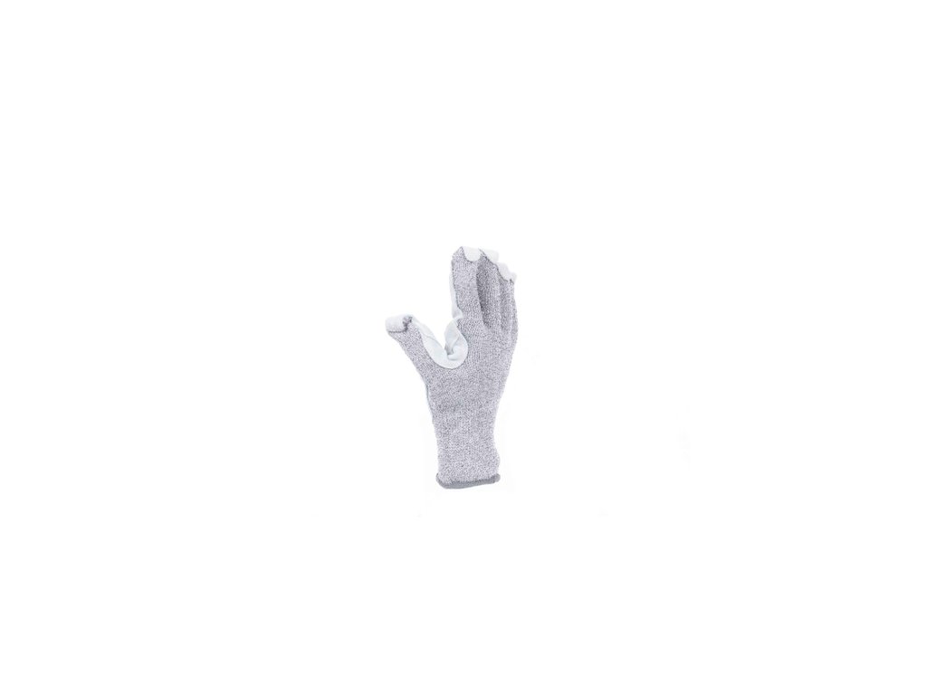 Pletené, bezšvové rukavice z modifikovaného skleneného vlákna, Spandexu a nylonu, so zosilnením z hovädzej štiepenky v dlani a na prstoch, zdvojenou vrstvou medzi palcom a ukazovákom, prekrytými špičkami prstov a odolnosťou proti prerezu tr. E.Dodatočné parametre