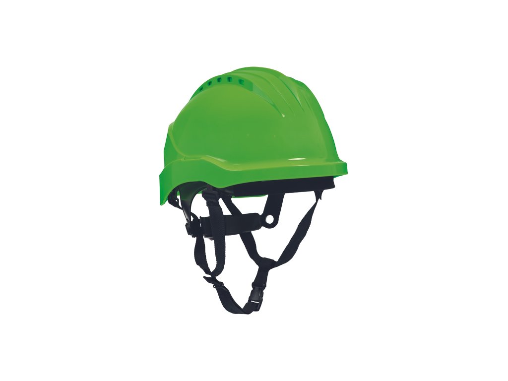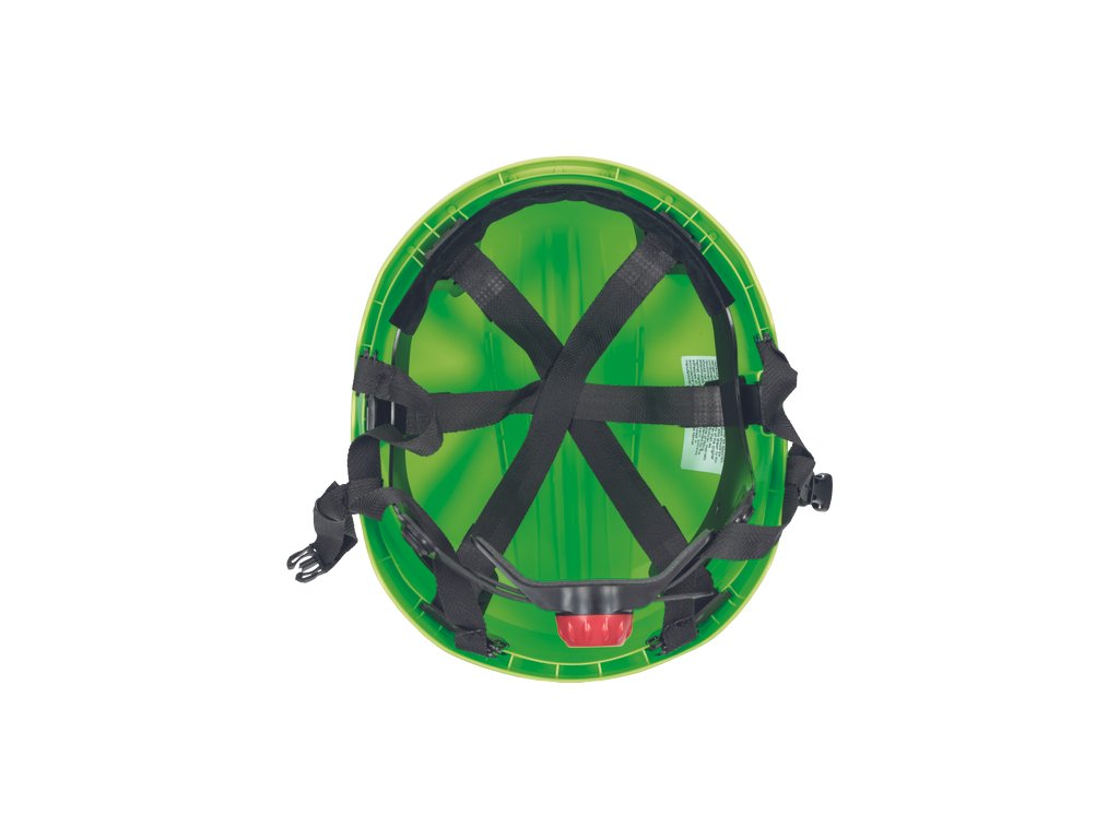 priemyselná ventilovaná prilba CURRO je špeciálne navrhnutá pre použitie pri práci v núdzových situáciách a stiesnených priestoroch vďaka podbradnému pásiku do Y so 4 kotviacimi bodmi a absenciou hľadia