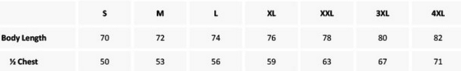 Tabuľka veľkostí: