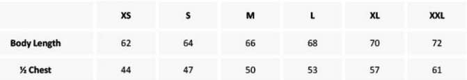 Tabuľka veľkostí: