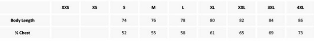 Tabuľka veľkostí: