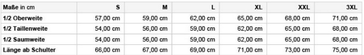 Tabuľka veľkostí: