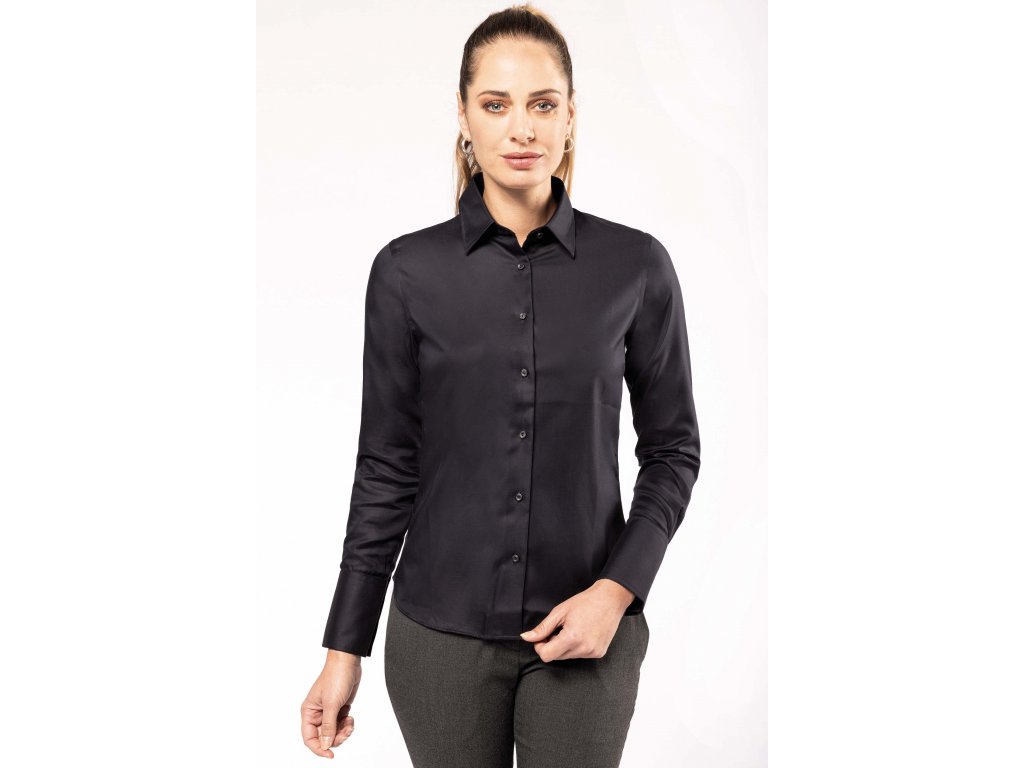 Dámska košeľa s dlhým rukávom v nežehliacej úprave je vyrobená zo 100% bavlny mikro keper; 120 g.