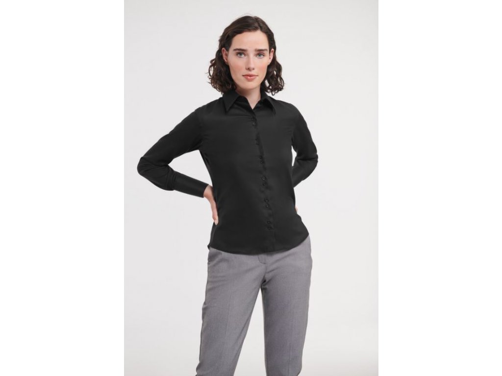 Dámska košeľa s dlhými rukávmi v nežehliacej úprave je vyrobená zo 100% bavlny mikro keper; 120 g.