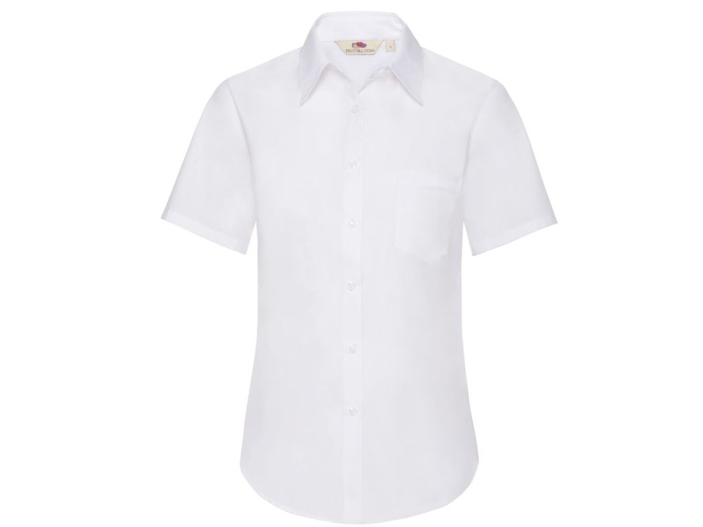Dámska popelínová košeľa s krátkym rukávom je vyrobená z 55% bavlny, 45% polyesteru; 120 g. (White: 115 g.)