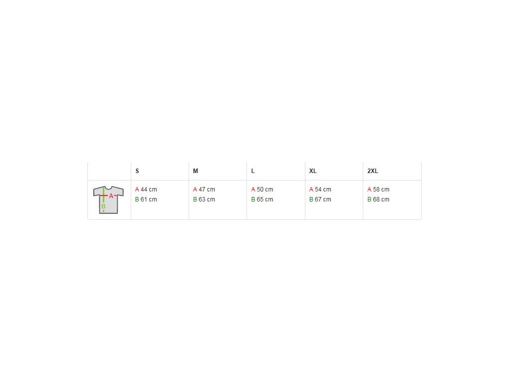 100% Bavlna prstencově předená, single jersey(Grey Heather: 85% Bavlna, 15% Viskóza); 185 g. Rozmery nájdete v Súvisiacich súboroch, pod fotkami.