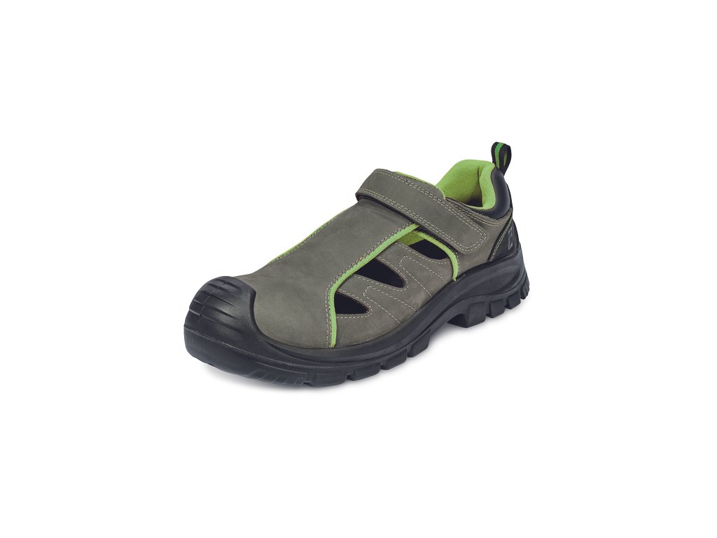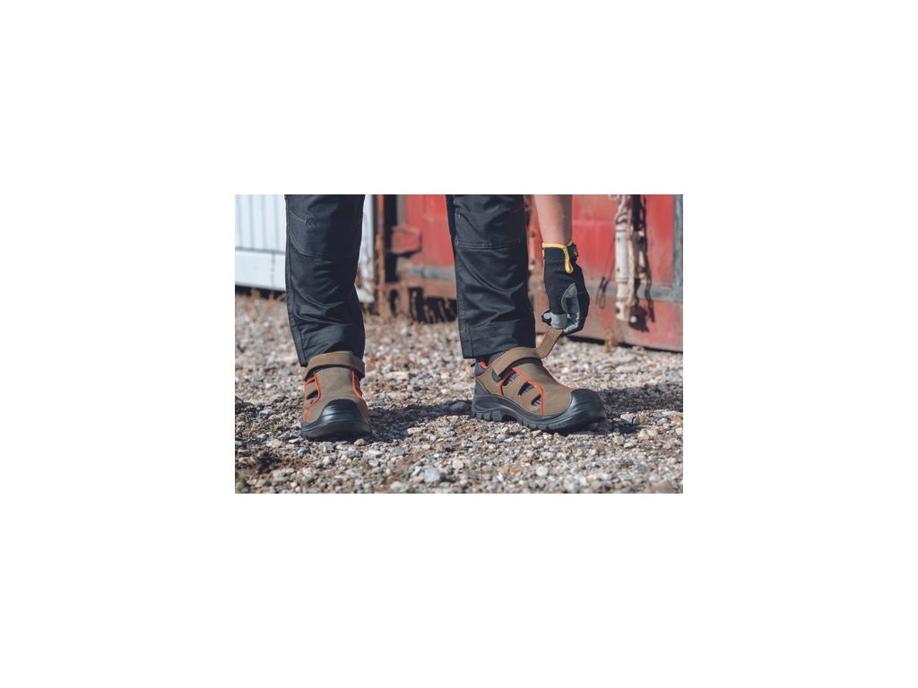 Bezpečnostný sandál s kompozitnou tužinkou a kevlarovou stielkou odolnou proti prepichnutiu. Podošva – PU/PU. Zvršok je vyrobený z kvalitnej nubuk kože. Výrazná perforácia zvršku zaisťuje perfektnú priedušnosť.