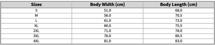 Tabuľka veľkostí: