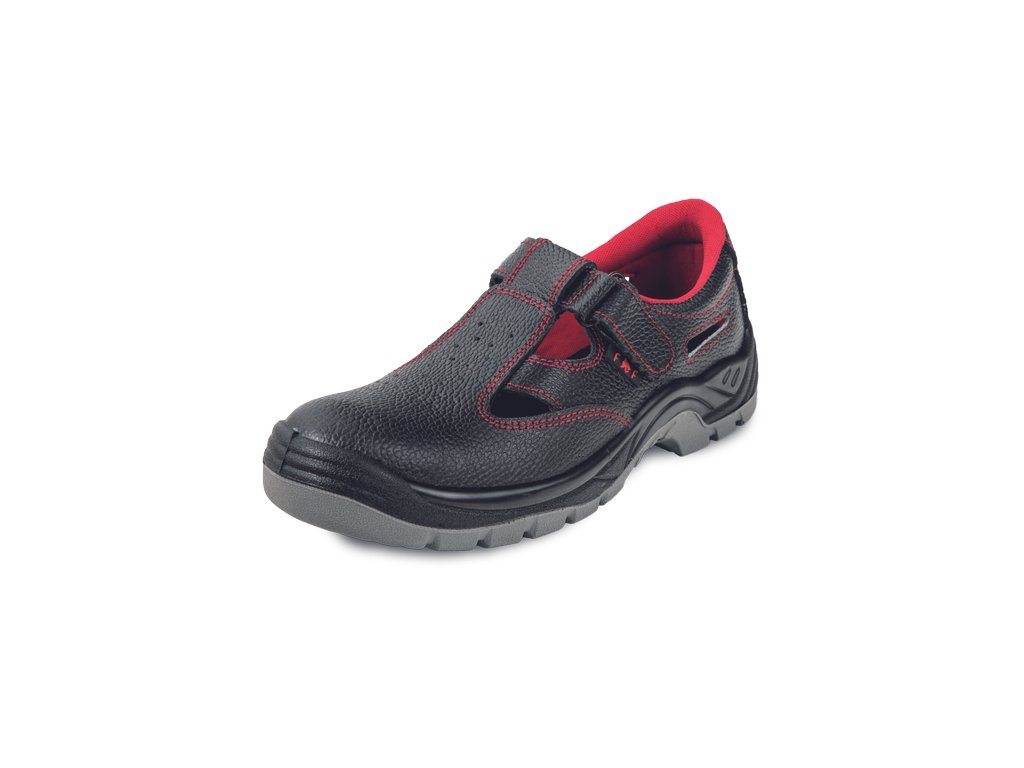 Bezpečnostné sandále s oceľovou bezpečnostnou špicou, PU/PU podošvou rezistentnou voči olejom. Zvršok – reliéfna štiepaná koža.