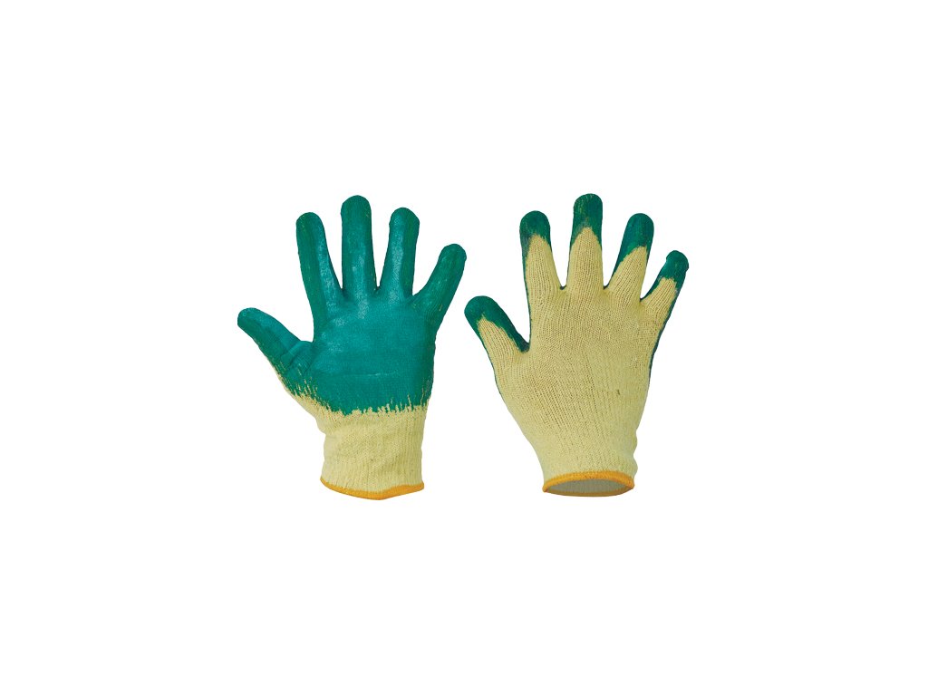 Pletené bezšvové rukavice zo zmesi bavlna/polyester. Polomáčené v latexe, s protišmykovým povrchom v dlani a na prstoch.Dodatočné parametre