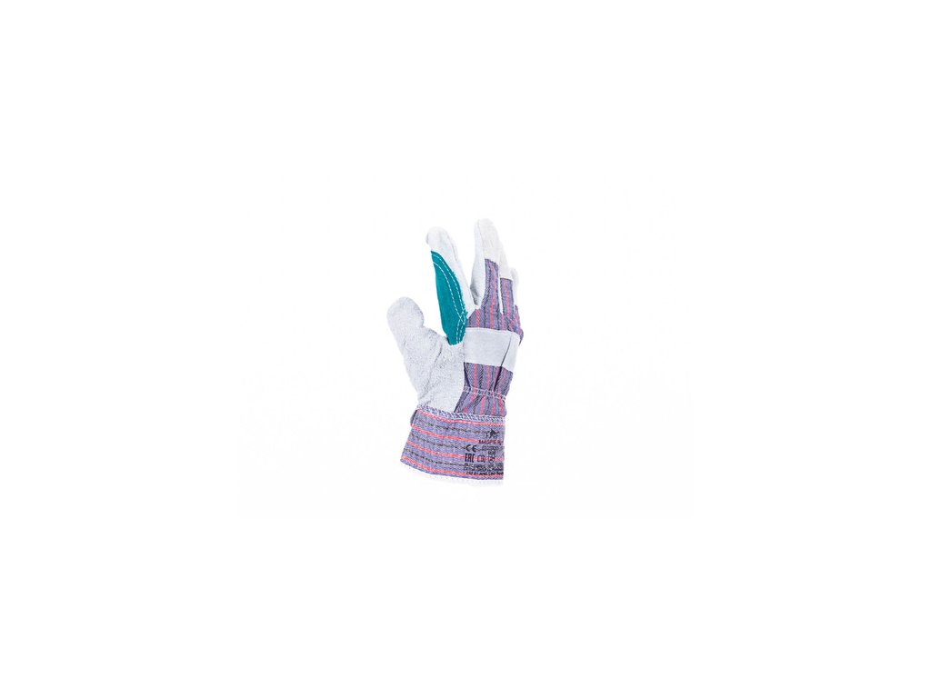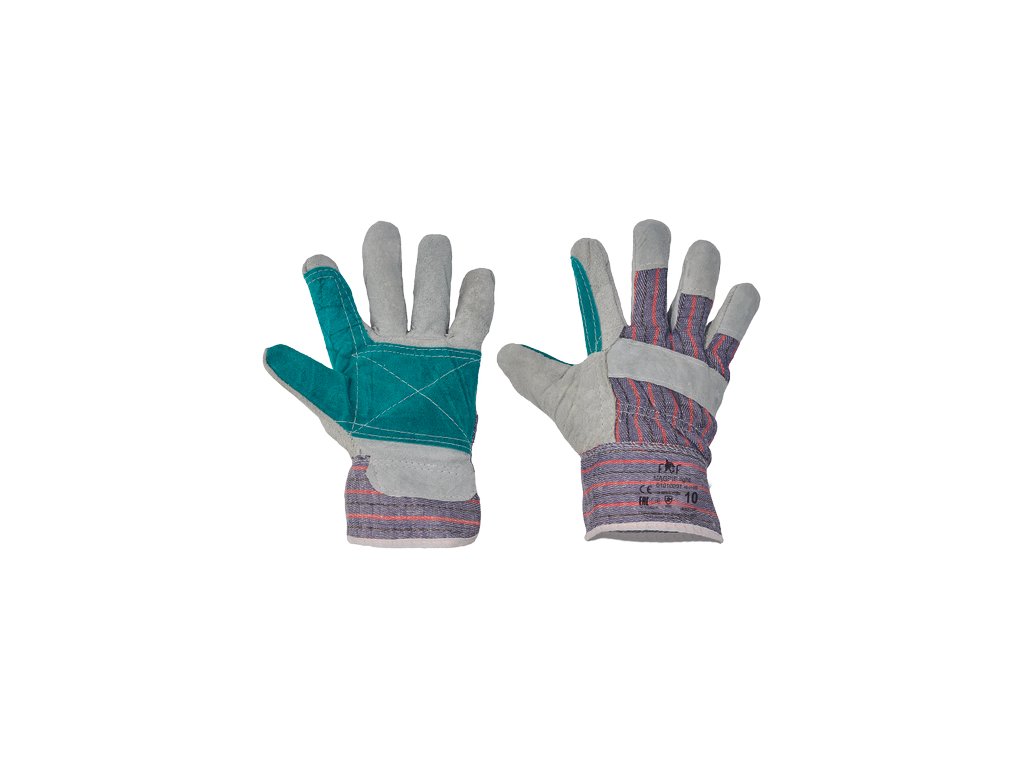 Kombinované rukavice z hovädzej štiepenky a textilu. Zosilnená dlaň s podšívkou, tkanina na chrbte.Dodatočné parametre