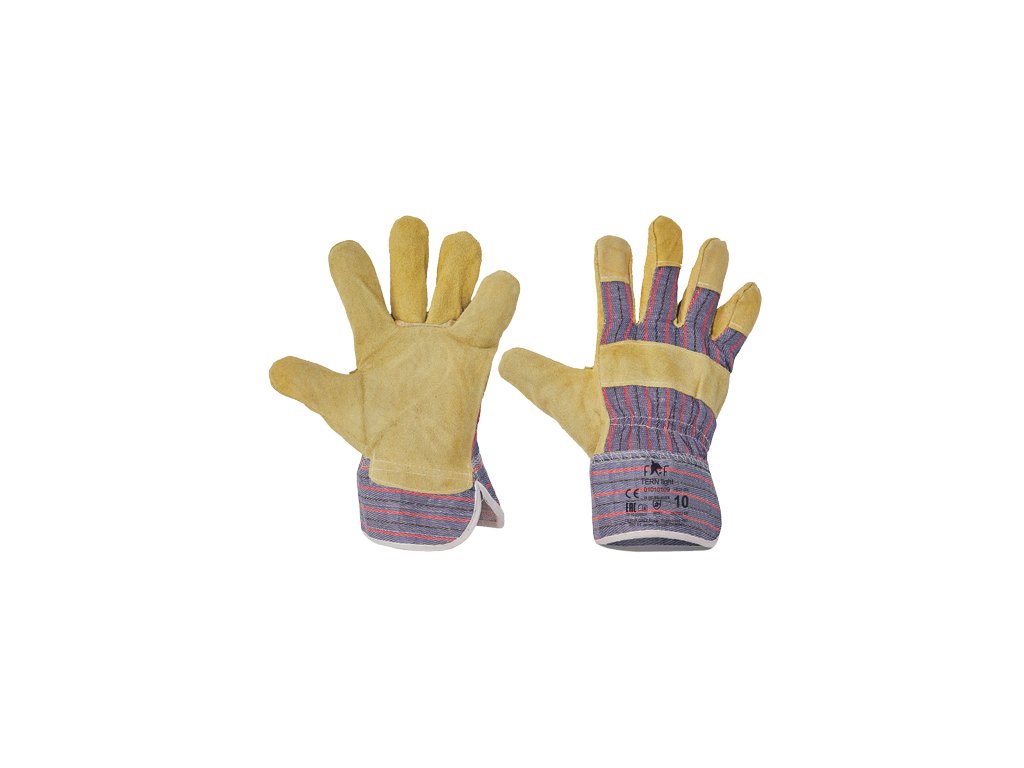 Rukavice z hovädzej štiepenky v dlani s podšívkou, chrbát a manžeta z bavlnenej tkaniny.Dodatočné parametre