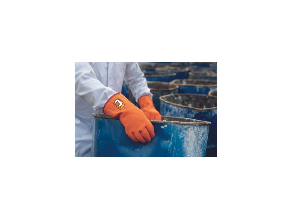 Rukavice šité z bavlneného úpletu, máčané v PVC, s polyuretánovou vložkou a podšívkou z teplákoviny, v celkovej dĺžke 30 cm.Dodatočné parametre