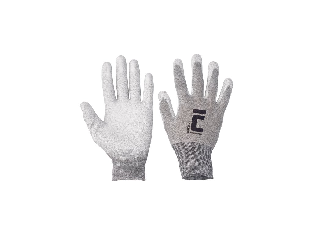 • pletené bezšvíkové antistatické nylonové rukavice s integrovaným uhlíkovým vláknom