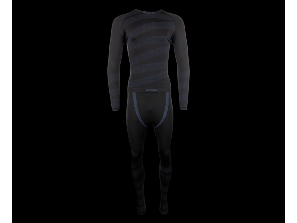 Pánsky funkčný set, vyrobený z rýchloschnúceho, priedušného, pružného, hrejivého a štruktúrovaného materiálu s obsahom aktívneho bambusového uhlia, ktoré vyniká rýchlym odvodom vlhkosti, schopnosťou absorbovať pachy a udržiavať telo v teple.Materiálový popis