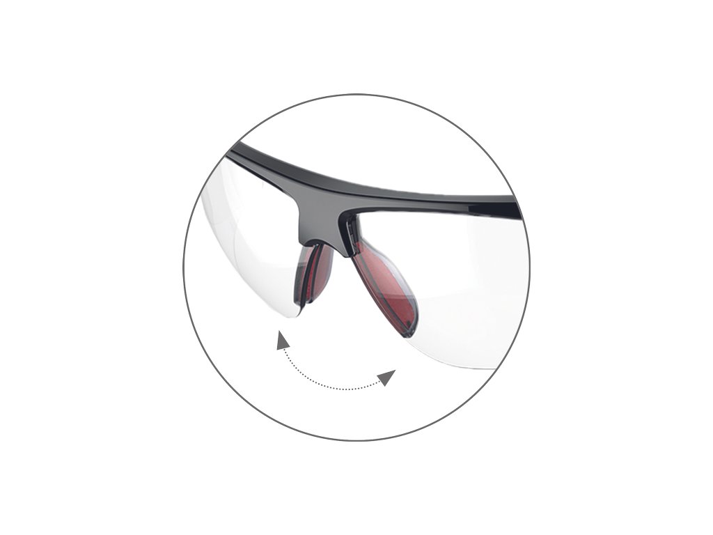 Okuliare majú jedinečný "plávajúci" a horizontálne a vertikálne nastaviteľný nosový mostík, ktorý je pokrytý materiálom TPE pre väčšie pohodlie a lepšiu priľnavosť