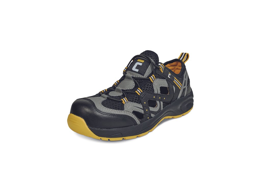 Bezpečnostné sandále s kompozitnou bezpečnostnou špicou. Podošva - Phylon/Guma. Zvršok je vyrobený v kombinácii kože a priedušnej sieťoviny. Žlté doplnky zvyšujú viditeľnosť užívateľa.