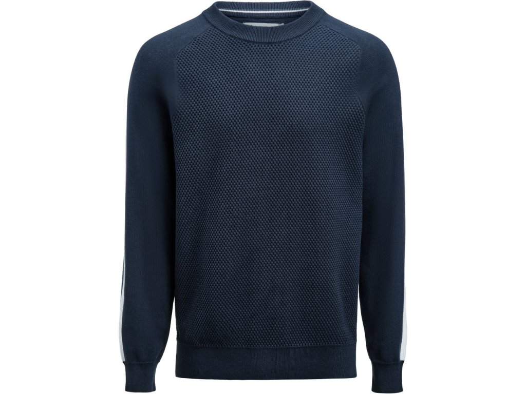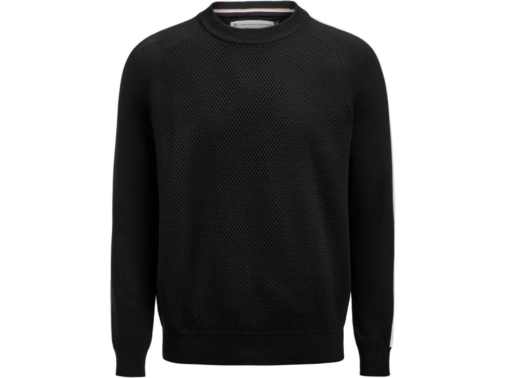 Pánsky sveter s kontrastným pruhom na golieri a rukávoch
