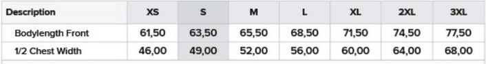 Tabuľka veľkostí:
