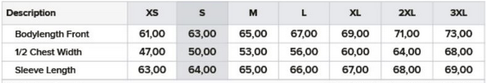 Tabuľka veľkostí: