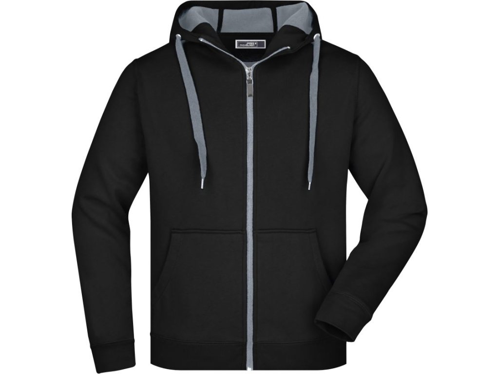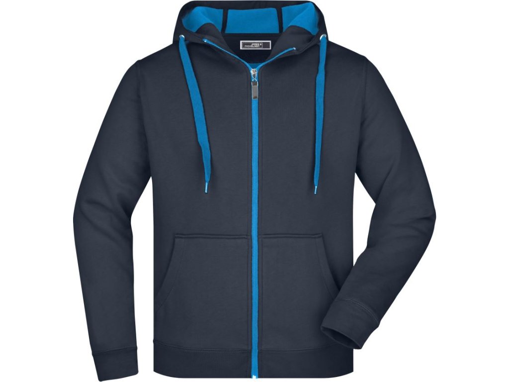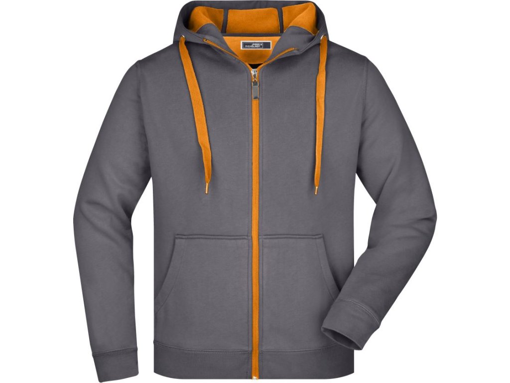 Kapucňa s ochranou brady, vsadené rukávy, elastické manžety na rukávoch a spodnom leme, klokanie vrecko, ploché švy, šnúrka, zips a vnútorná strana v kontrastnej farbe, prateľné na 40 °, nemožno sušiť v sušičke380g/m², vonkajšia strana: 55% polyester , 45% bavlna, single jersey, vo vnútri: mikrofleece