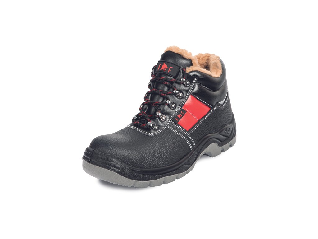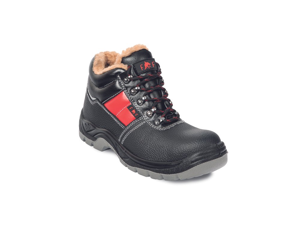 • bezpečnostná termoizolačná členková obuv s oceľovou špičkou a stielkou proti prepichnutiu • PU/PU podrážka odolná voči olejom • zvršok • reliéfna štiepaná koža s vodoodolnou úpravou • strieborné reflexné doplnky • izolačná "kožušinová" podšívka spĺňajúca certifikáciu CI (chladová izolácia)