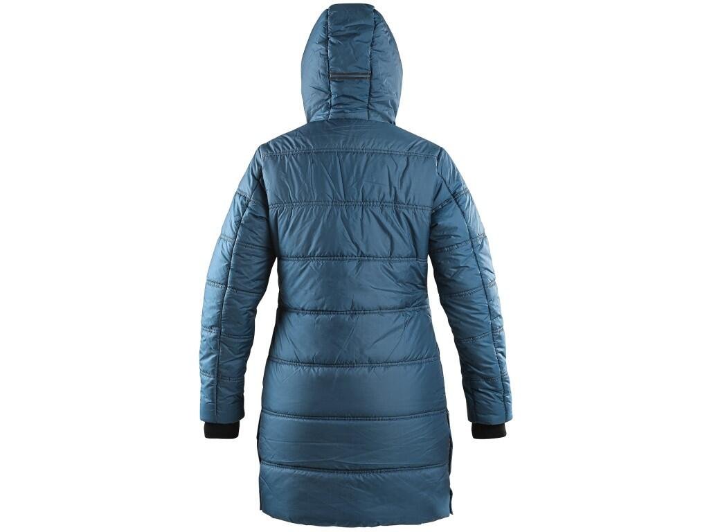 Dámsky zateplený kabát s kapucňou, obojstranným zipsom a bočným rázporkom na cvoky