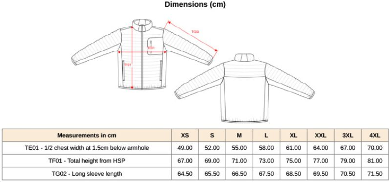 Tabuľka veľkostí:
