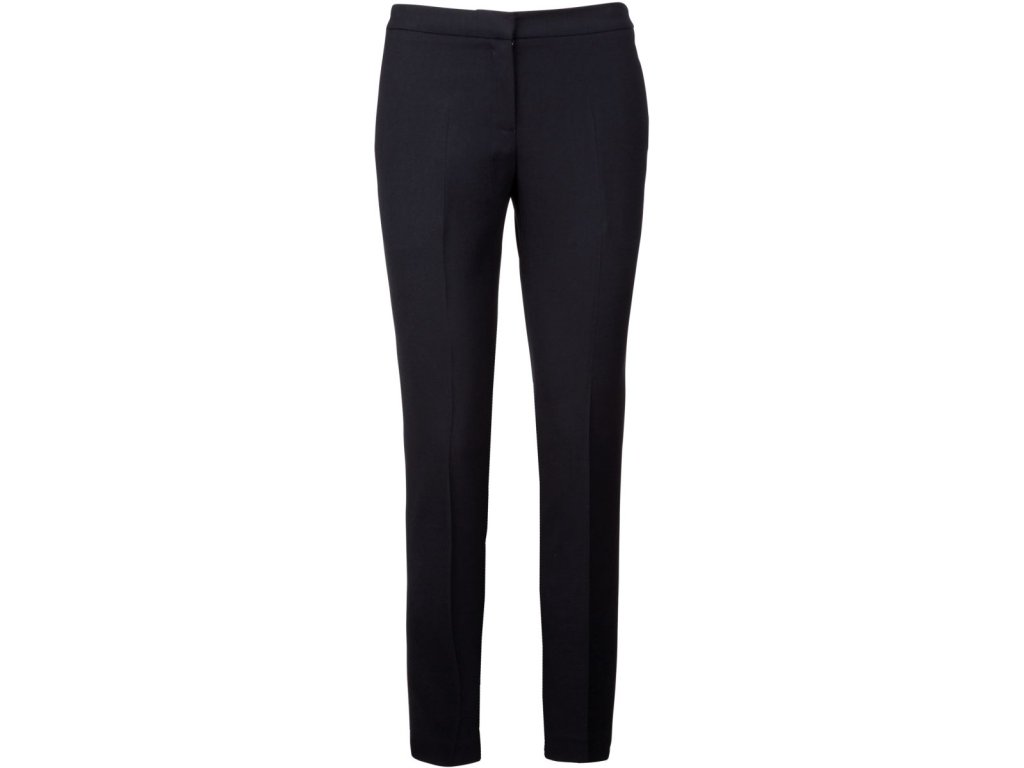 Úzky strih, elastický pás vzadu pre optimálne pohodlie, nohavice s neviditeľnými lemami, zips so skrytým háčikom a gombíkom, 2 šikmé vrecká vpredu a 2 zadné vrecká s lemovaním, prateľné na 40 °, chemické čistenie, nemožno sušiť v sušičke, vnútorná dĺžka noha palce (78cm) 220g/m², 64% polyester, 34% viskóza, 2% elastanDodatočné parametre